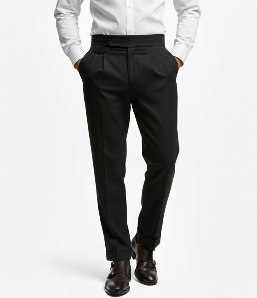 Inspired by classic Italian menswear, these trousers are designed with a clean mid-rise, structured waist, and a subtle taper that creates a sharp yet effortless silhouette.