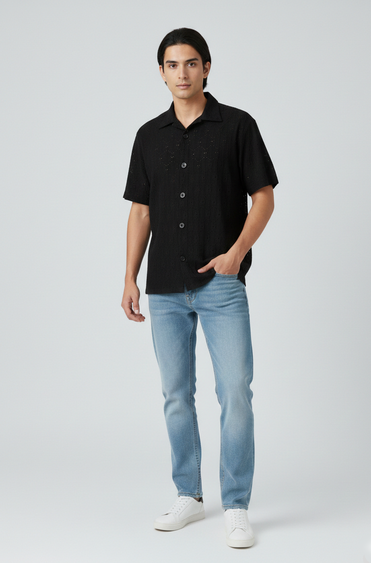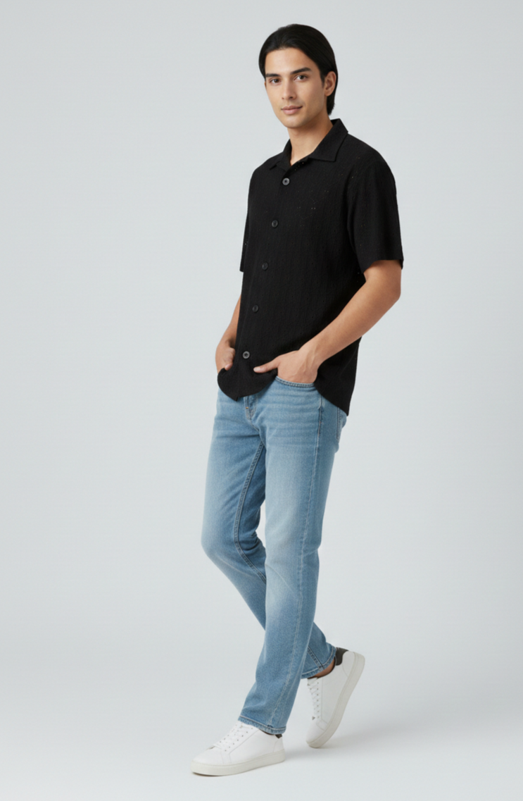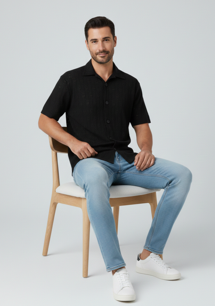 Giorgio is a study in understated sophistication. Crafted from a premium jacquard knitted fabric, this shirt features a subtle woven texture that adds depth and quiet character without drawing attention. Designed for men who value restraint, it speaks through quality rather than excess.